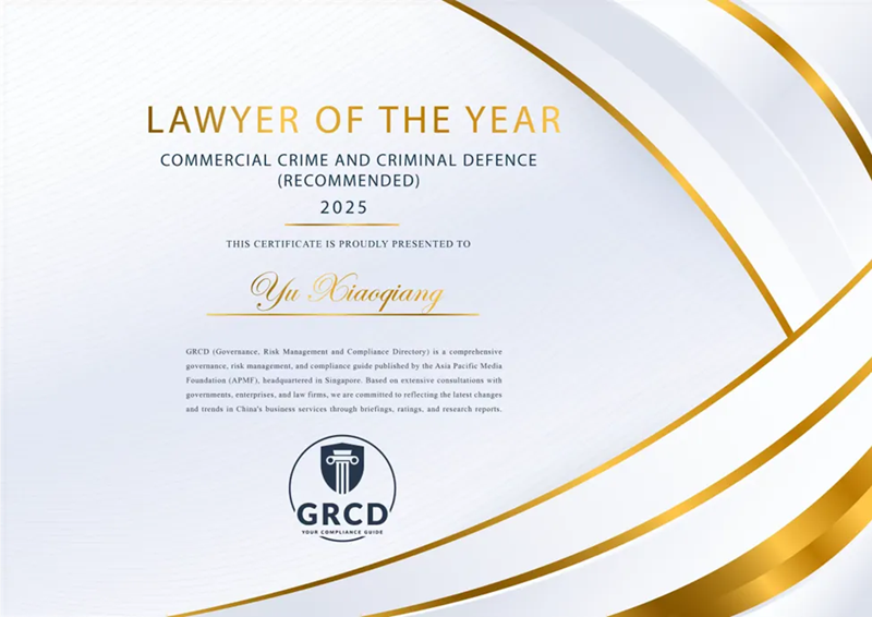 2025年7月26日,在亚太传媒基金会(APMF)举办的“2025年GRCD中国年度大奖颁奖典礼”中,北京德和衡(上海)律师事务所高级权益合伙人、执行主任于小强律师凭借卓越的业务能力、优质的客户口碑和广泛的行业评价,成功获选“2025年度商业犯罪与刑事律师大奖”。