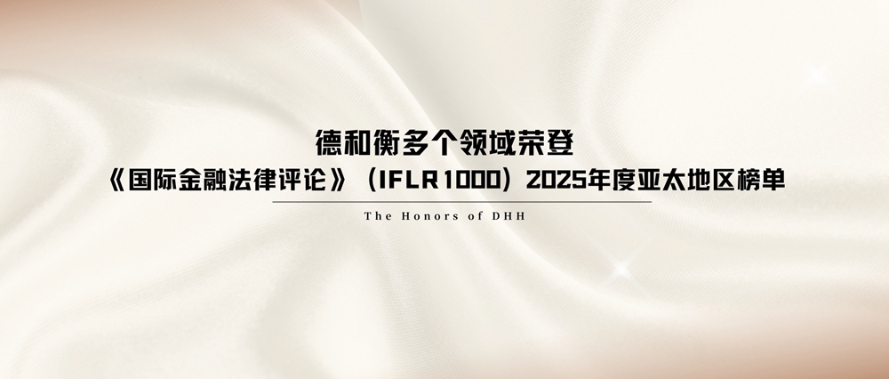 2025年7月29日,国际领先金融法律媒体《国际金融法律评论》(IFLR1000)发布了2025亚太地区榜单。北京德和衡律师事务所(以下简称“德和衡”)再次以卓越的专业实力与广泛的市场赞誉,在银行金融、公司并购、投资基金、破产重整四大核心领域荣获推荐。连续5次蝉联榜单,彰显了德和衡在亚太地区金融法律服务市场的领先地位。