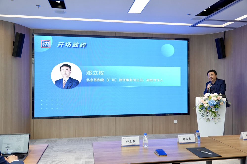活动在德和衡(广州)律师所杨茂律师的主持下拉开帷幕。德和衡(广州)律师所主任邓立权在开场致辞中对到场的嘉宾表示热烈的欢迎,邓主任指出AI技术是目前最热的话题,本次活动关注该热点议题,体现了律师对于法律前沿问题高度的敏感度,对该议题的研讨有利于促进新业务的开拓。最后,邓主任预祝本次论坛圆满成功。