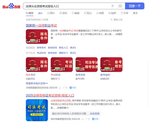 (在百度搜索引擎检索“法律从业资格考试报名入口”,可以检索到许多非官方的推广链接)