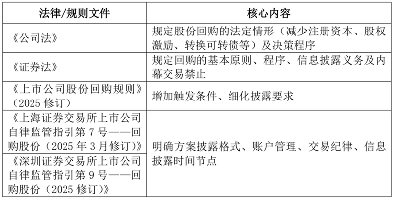 与上市公司回购股份相关的主要法律、行政法规及自律规则如下。