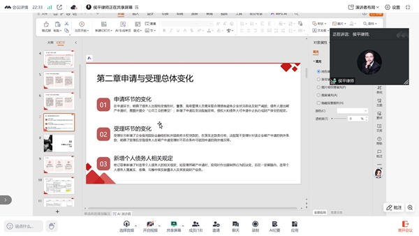 德和衡企业重组与破产业务中心总监、权益合伙人董燕清律师以《企业破产法修订概述》为题作专题报告,简述了企业破产法的修订历程,系统梳理了企业破产法修订的核心要点,解读了修订背后的立法逻辑与导向,帮助参会人员快速搭建起对本次法律修订的整体认知框架。