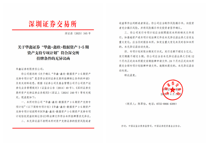 2025年4月14日,由北京德和衡律师事务所周天喜律师团队助力的“华鑫-鑫欣-数据资产1-5期资产支持专项计划”正式获得深圳证券交易所无异议函,标志着全国首单数据资产证券化项目成功破冰。作为该项目的法律顾问,北京德和衡律师事务所周天喜律师团队凭借深厚的专业功底和创新实践,为专项计划的交易结构设计,项目合规性审查及风险防控提供了关键支持,助力打通数据要素由资源化转为资产化后,实现数据资本化的“最后一公里”。