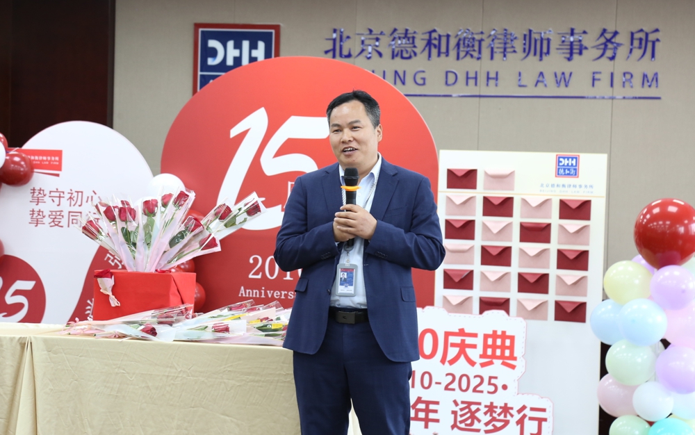 庆典盛启,共贺生辰。2025年5月20日,在这个充满爱意的日子里,北京德和衡律师事务所(以下简称“德和衡”)十五周年庆典在北京银泰中心C座12层盛大举行。此次周年庆典以“挚守初心 挚爱同行”为主题,在京合伙人律师员工欢聚一堂,共同庆祝德和衡十五岁生日。