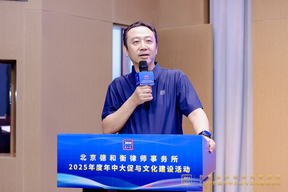 回顾上半年,律所在业务发展与专业建设上成绩亮眼,服务客户群体持续扩大,专业实力获得行业广泛认可,所获荣誉与专业著作出版成果丰硕。同时,刘主任直面发展中的问题,聚焦业务风险防控体系完善、高素质人才引进力度加大、业务协同机制深化等关键课题,紧扣年度工作主题精准施策。针对下半年工作,刘主任进行了系统展望与部署,为全所发展明确清晰方向。最后,刘主任希望德和衡全体同仁在下半年的征途上并肩前行,再创佳绩。