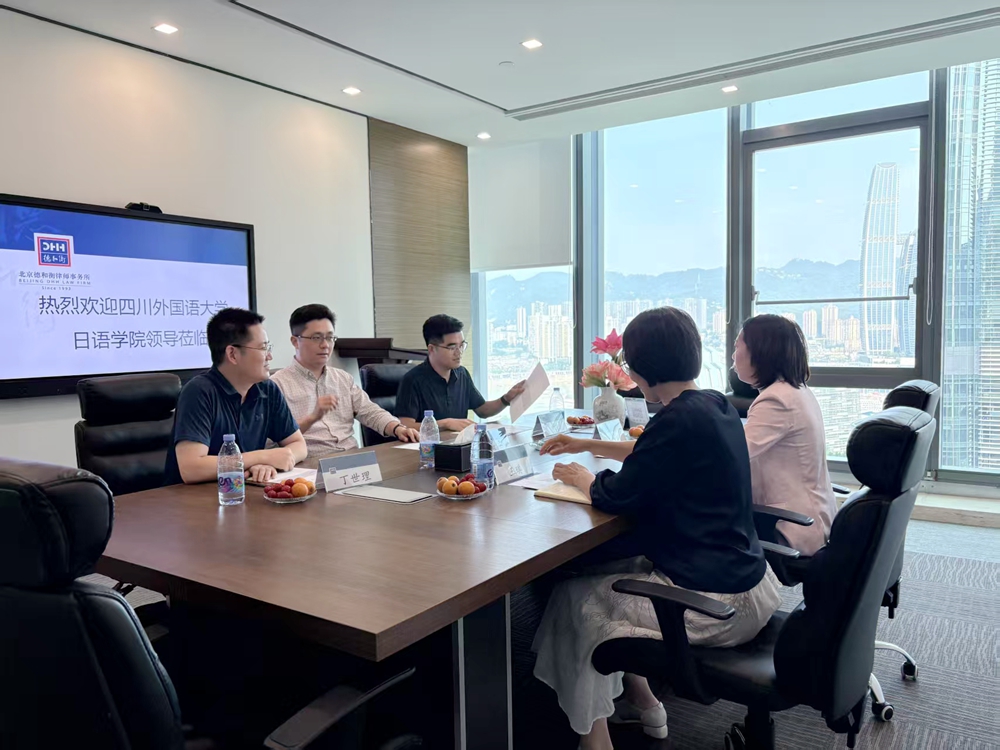 日前,为进一步深化校企合作,服务涉外法治人才培养,四川外国语大学日语学院副院长陈可冉教授、研究生教研室主任丁世理副教授、学院辅导员曾贵老师一行到访北京德和衡(重庆)律师事务所。所主任王琪律师、日本业务部西南地区负责人王继跃律师予以热情接待。