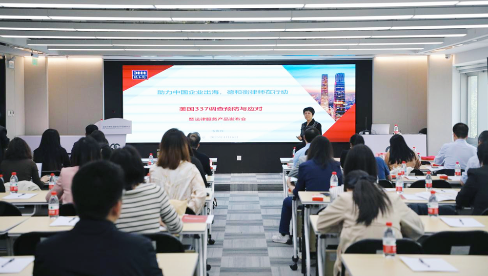 北京德和衡律师事务所(以下简称“德和衡律师所”)执行主任陆阳律师在研讨会上发表了热情洋溢的致辞。陆主任表示,德和衡律师所长期关注并致力于解决中国企业出海过程中面临的各类法律问题,及时为企业提供专业、系统的法律支持。她指出,由美国国际贸易委员会发起的337调查,已成为影响中国企业乃至相关行业的重要法律挑战,具有极强的专业性和实践性。陆主任高度评价了德和衡律师所知识产权业务中心337调查项目团队韦贵红、金鼎、葛嘉三位律师和李颖、夏颖两位专利代理师展现出的专业精神,充分肯定了团队基于多年理论研究与实务经验,针对企业需求提出的解决方案以及推出的相关法律服务产品,切实帮助企业提升国际法律风险防范与应对能力。