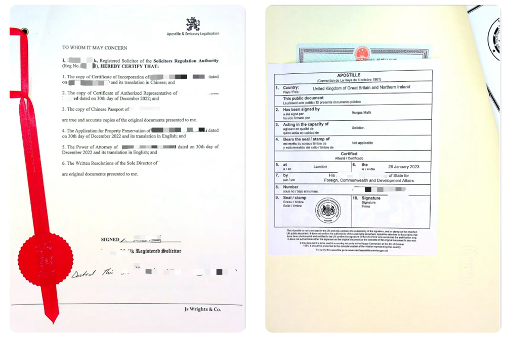 如果在英属维尔京群岛、开曼群岛设立的公司在中国内地涉及诉讼,需要授权内地律师参与的话,则需要对公司的主体资料以及授权等手续办理公证。由于维尔京群岛和开曼群岛都属于英国,因此其公证手续需要在英国完成。