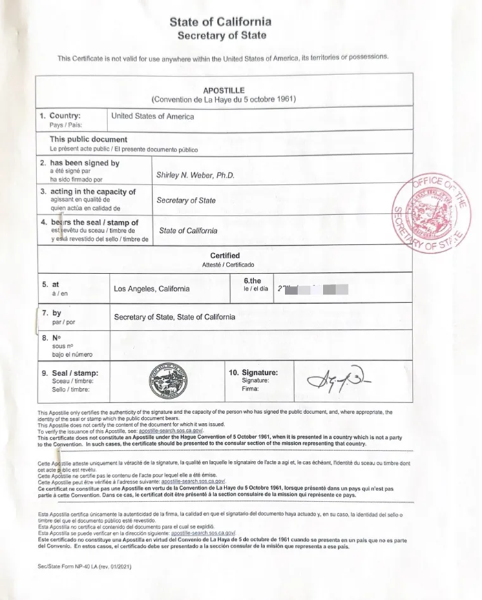 第一步,需要在加州州务卿网站上下载对应的材料,并且取得专有编码的文件。第二步,就下载的文件进行海牙认证。