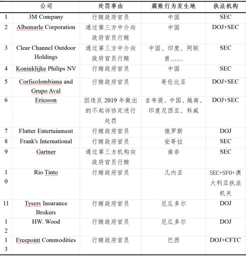 表二:2023年FCPA执法涉及企业数据整理