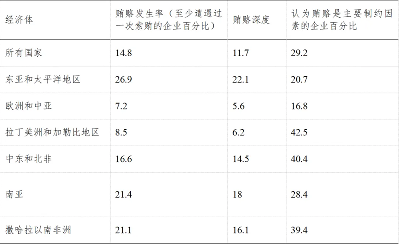 表一:世界银行2022年公布贿赂情况相关数据