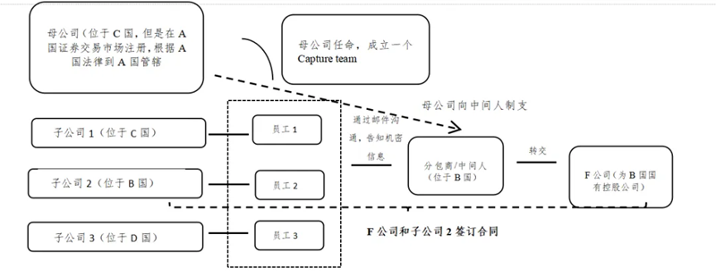 跨国公司商业贿赂情况较为复杂,以ABB LTD公司为例[1],跨国公司商业贿赂行为往往会涉及多个司法管辖区,仅因母公司的公司证券在A国证券市场发行,当事人以及贿赂行为均未涉及A国,但母公司的商业贿赂行为仍然可能受到A国的管辖。