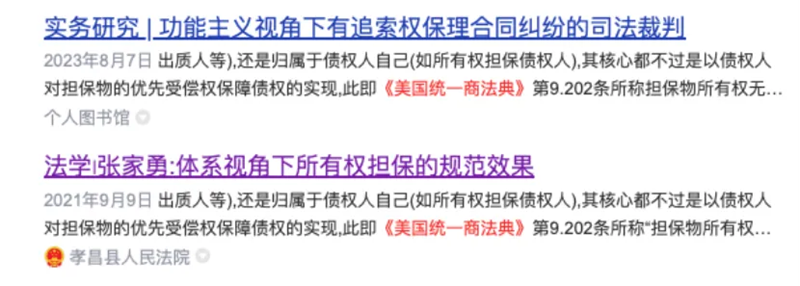 术语堆砌但缺乏实质案例支撑:引用的案例并不全面,并且对《民法典》第388条、《美国统一商法典》的引用流于表面,未结合具体条款展开分析。