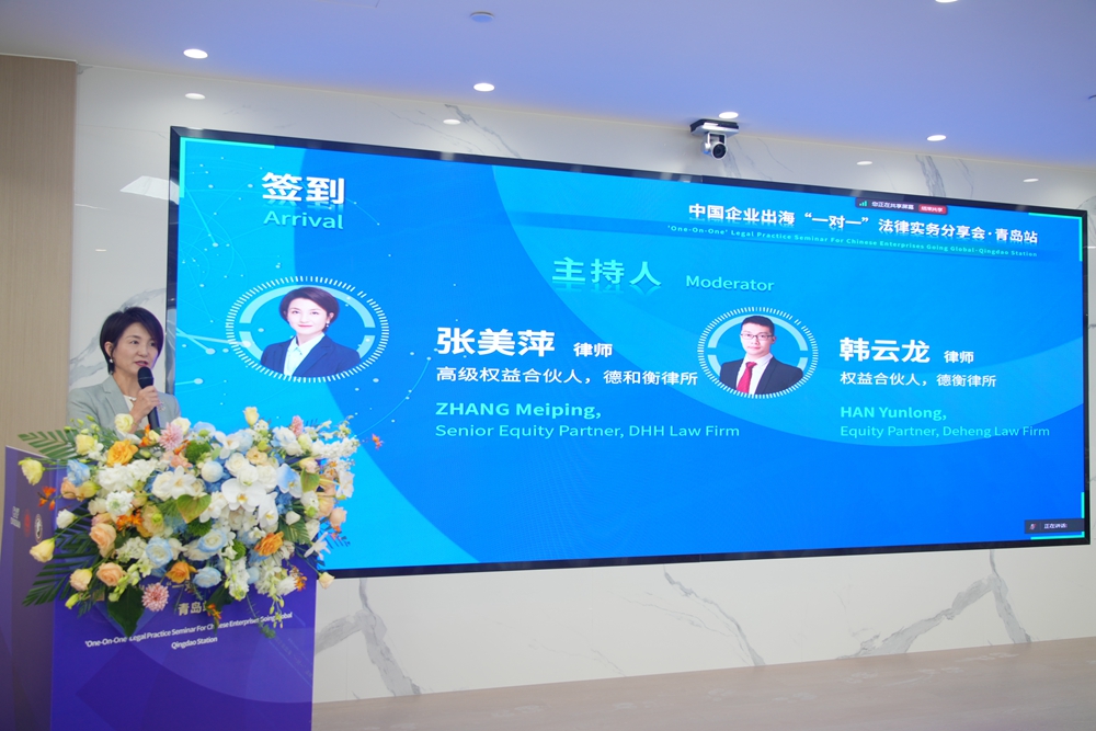本次分享会由北京德和衡(青岛)律师事务所承办,并得到了青岛市碳中和经济产业联合会、青岛中央法务区涉外法务区、青岛市经济学会、青岛市工商联女企业家商会、青岛仲裁委国际贸易仲裁院、青岛市港澳创新经济发展促进会、青岛市市南区律师协会、威科先行大力支持。分享会由北京德和衡律师事务所高级权益合伙人张美萍、山东德衡律师事务所权益合伙人韩云龙主持。