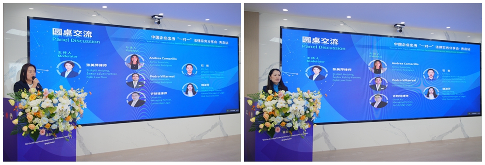 圆桌交流环节,由北京德和衡律师事务所高级权益合伙人张美萍担任主持,Gonzalez Rodriguez律所管理合伙人Luis A. Gonzalez Sanchez,Jurisbridge Legal律所管理合伙人许轶铭(线上参与),青岛云路先进材料技术股份有限公司财务总监、董事会秘书石岩,青岛特锐德集团法务总监、法务风控中心总经理魏淑芳围绕中国企业出海的法律实务问题进行了深入讨论。嘉宾们结合各自的专业领域和实践经验,从律师及企业高管角度各抒己见,为中国企业出海前沿展望和合规实务提供了多方视角与立体解读。