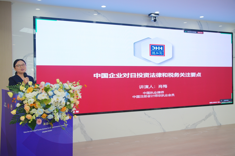 北京德和衡(青岛)律师事务所执业律师肖梅围绕中国企业对日投资法律及税务关注要点进行分享。肖梅律师详细剖析了当前中国企业对日投资最新动向、热点行业以及日本外资准入制度及组织形式,并着重强调了对日投资税务关注要点,为参会企业提供了实用的税务筹划建议。肖梅律师表示,了解并遵守这些规定,对于中国企业来说至关重要,这不仅直接影响到对日投资的顺利进行,也关系到企业未来的经营发展。