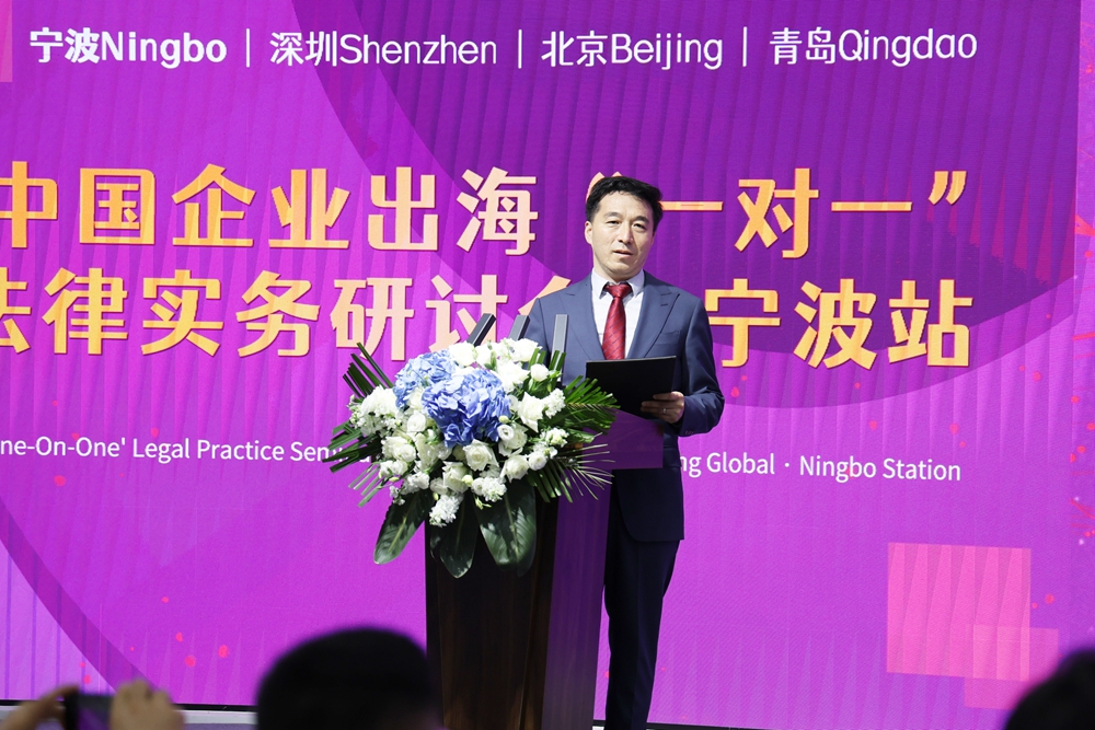 王超主任表示,全球化浪潮滚滚而来,时代的呼声萦绕耳畔,中国企业走向国际化不仅是国家战略的需求,更是企业自身发展的必然选择。宁波作为中国对外贸易的重要枢纽城市,拥有优越的地理位置和丰富的港口资源,宁波企业在航运、物流、制造等领域已具备显著优势。通过这次活动,期待能与各位企业家携手探讨如何在复杂的国际环境下防范风险、抓住机遇,助力企业实现全球化布局。
