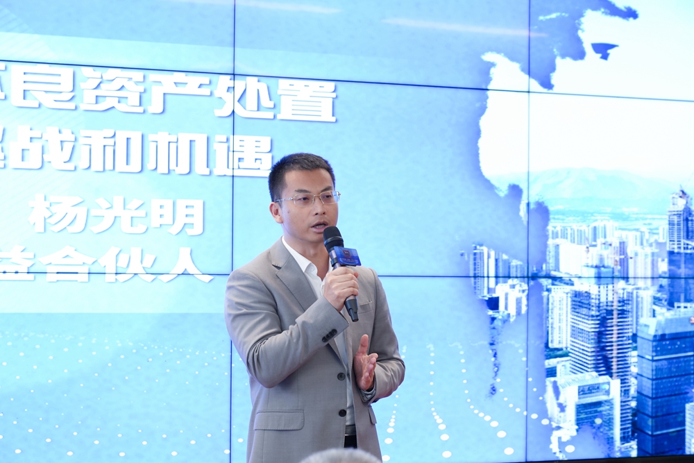 华夏银行深圳分行法律事务部总经理张加文以《金融机构不良资产处置面临的挑战和机遇》为主题,重点剖析了不良资产清收中财产的转换性,并提出专业化、精细化、精准化、科技化、数字化将是不良资产处置的方向。
