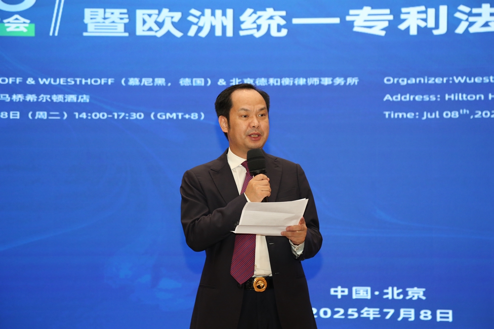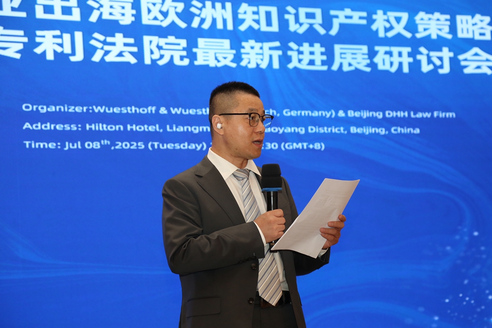 作为战略合作的重要开端,两家律所于7月8日下午在北京希尔顿酒店联合举办了“中国医药企业出海欧洲知识产权战略暨欧洲统一专利法院(UPC)最新进展研讨会”。会议由Thomas Sonnenhauser博士、江波博士、高级权益合伙人黄政燏致辞,权益合伙人王文俊和高级顾问夏颖共同主持。