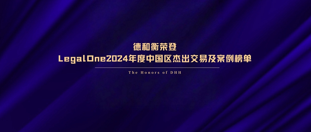 2025年8月15日,国际法律评级和研究机构LegalOne公布其“2024年度中国区杰出交易及案例”(Deals of the Year 2024 in China)榜单。北京德和衡律师事务所荣登排行榜,高级联席合伙人陈秀玲律师、李庆律师办理的多个公司合规项目获得LegalOne Merits(Remarkable/优秀)评级认可。