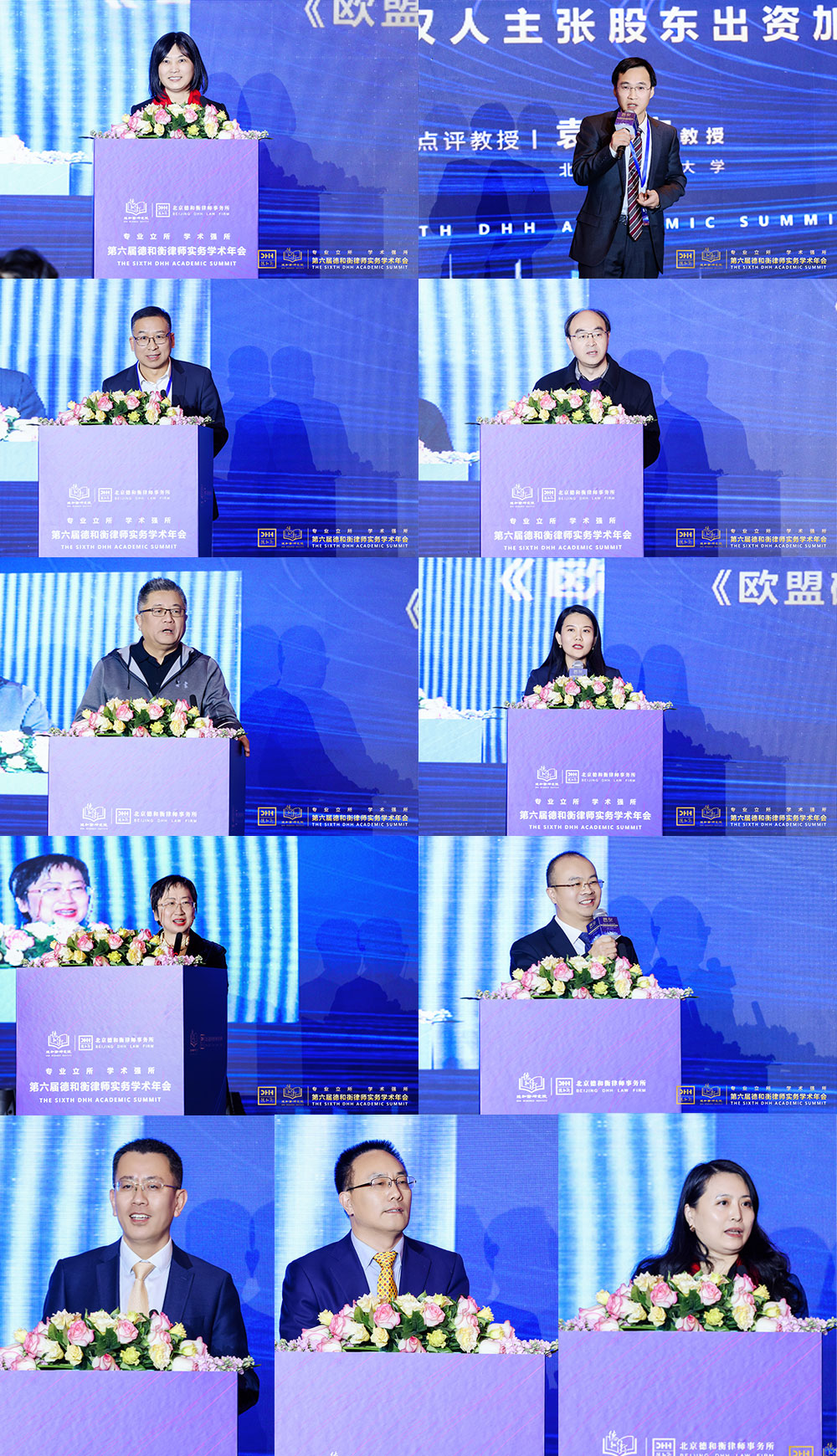北京理工大学李寿平教授、清华大学申卫星教授、中国政法大学姚国建教授、中国社会科学院席月民教授、山东大学郑智航教授、中国社会科学院谢鸿飞教授分别从六位律师的报告主题出发,结合自身在法学研究工作中对相关问题的思考以及学术界的前沿理论动态,对各位律师的报告进行了点评。各位教授的点评高屋建瓴、条分缕析、切中肯綮,为德和衡律师剖析不同方面法律实务与理论相结合的深要之处,将学术探讨引向法律的深远层次,展现了坚实的学术功底与独到的理论见解,大力推动了德和衡法学研究的深入发展,为德和衡法学研究的高质量发展提供了新的坐标方位。