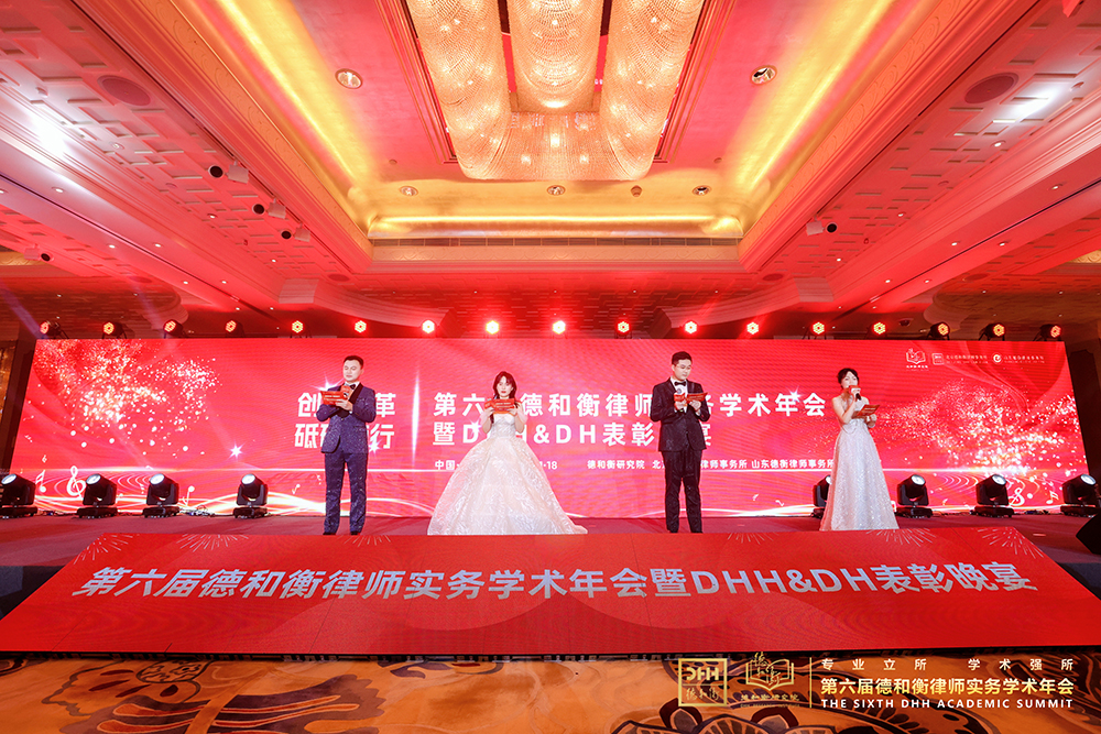 时维岁新,律学互进,含英咀华,于斯为盛。1月18日,第六届德和衡律师实务学术年会在北京中国大饭店成功举办。活动现场高朋满座、群贤毕至,来自国内多家知名高校的法学专家教授、“一带一路”律师联盟秘书长、DHH&DH权益合伙人、首席联席合伙人、学术年会获奖代表、法律产品大赛获奖代表、优秀青年律师代表等近三百人济济一堂,学者教授与律师们以深厚的学养、独到的见解和生动的实践碰撞出法律智慧,共探法治未来。整场学术年会通过“德和衡律师”“德和衡研究院”两个视频号直播,线上共计2万人次观看。