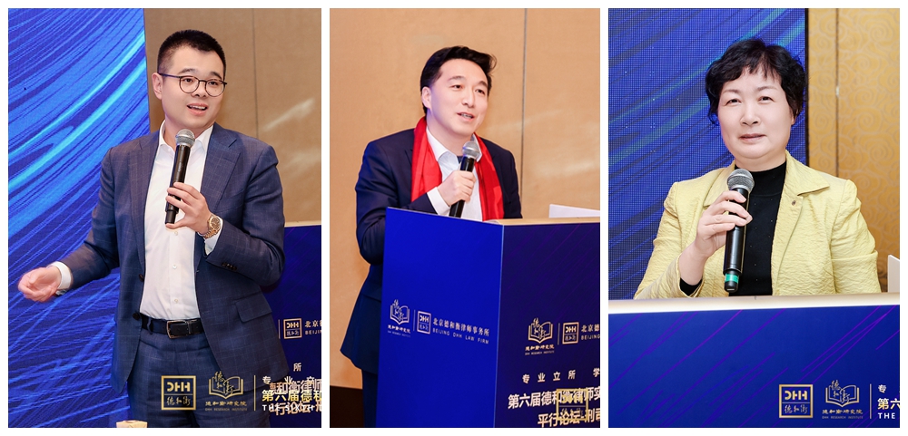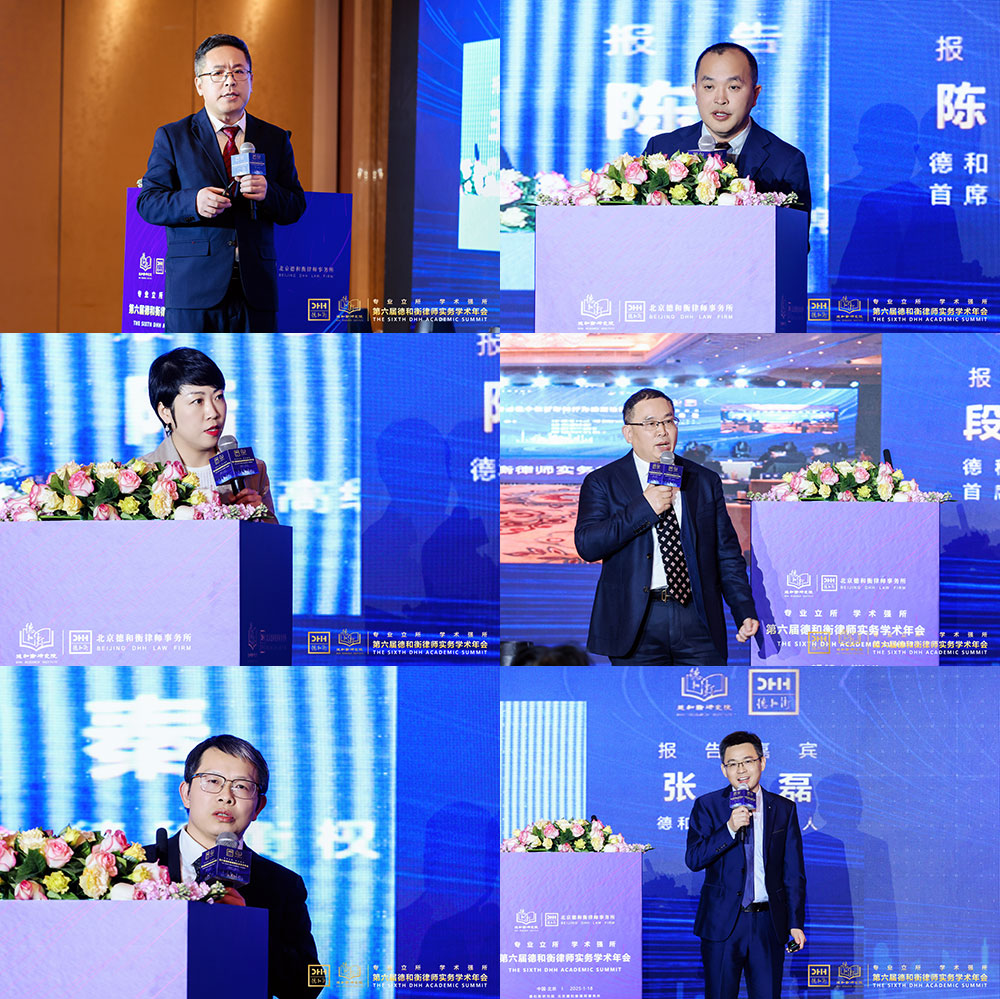 德和衡(长沙)律师所名誉主任郭超群律师,德和衡(宁波)律师所汪敬涛律师,德和衡律师所权益合伙人王希娟律师,德和衡(兰州)律师所副主任李世军律师,德和衡律师所高级权益合伙人易燕律师,德和衡(上海)律师所姚耘杰律师,德和衡(深圳)律师所高级联席合伙人曾强律师,德和衡(宁波)律师所伍方凌律师,山东德衡律师事务所高级权益合伙人刘向东律师分别以《家庭教育指导令的现状检视与完善路径——以家事审判为视角》《行政拘留司法救济程序的反思与修正》《民营企业的刑法保护 ——<刑法修正案(十二)>》《杨某与 A 公司保险纠纷—表见代理认定、民刑关系处理及典型意义探究》《论合同纠纷中违约金的法律适用——以一起涉港股份转让合同纠纷为例》《民营企业合规化管理的理解与实务——基于律师承办企业合规业务的视角》《对赌协议股权回购及业绩补偿条款的争议法律问题研究》《和平合作的国际海洋秩序及其动因》《对假冒注册商标罪中服务商标入刑规则的实务探析》为题,从学术求真立场出发,以具体的司法适用为基础探讨司法实践中法律适用的最佳效果。